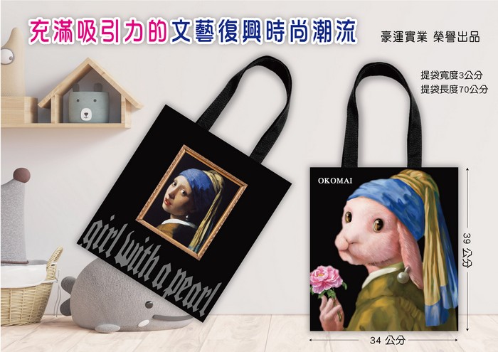 - 主商品:世界名畫 手提包 文創手提包 (珍珠兔)