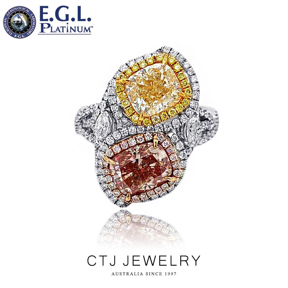 - 主商品:CTJ EGL4克拉18K金粉黃彩鑽戒(EGL雙主石系列)