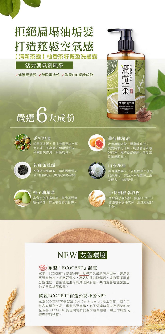 - 主商品:【茶寶 潤覺茶】柚香茶籽輕盈洗髮露350ml(2瓶組)