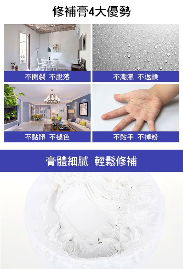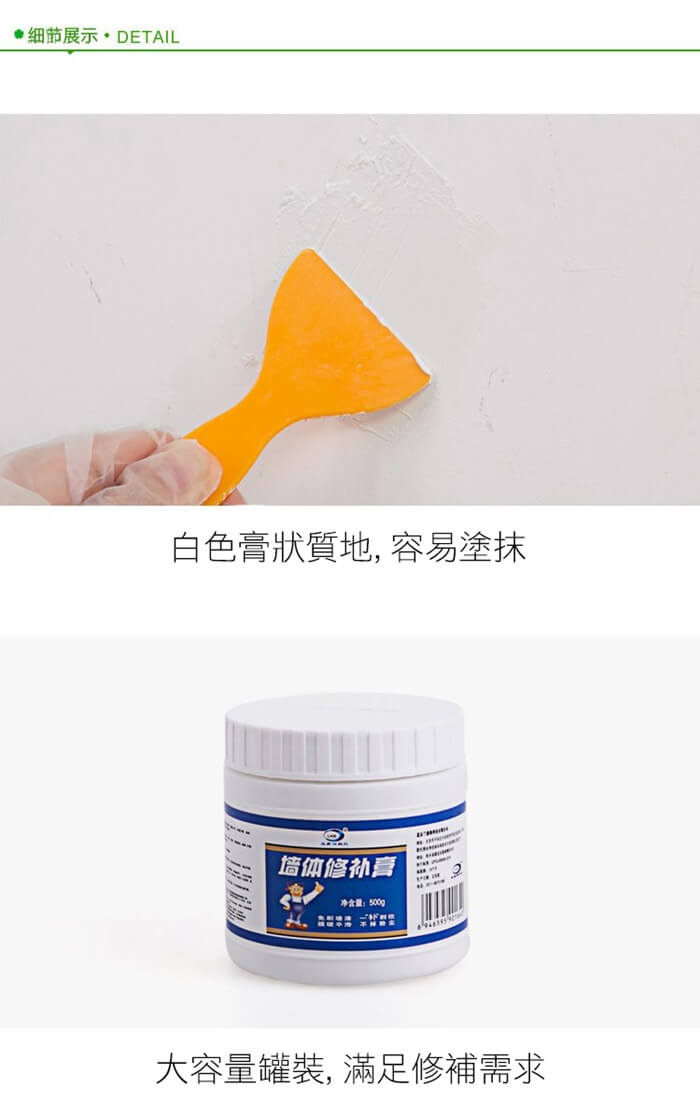 - 主商品:防水防霉墻體去污修補膏500g(超值4入)