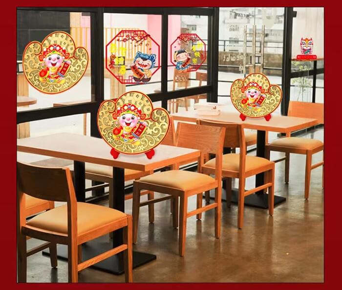 可擺放於桌面做擺飾、掛於牆面裝飾,也貼在門上展示。