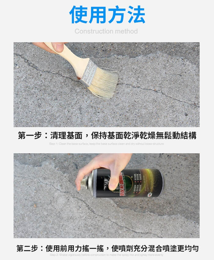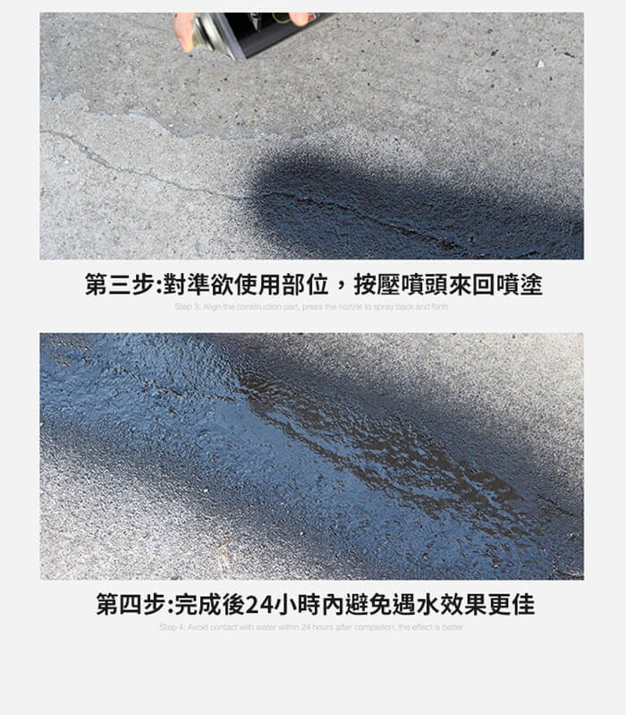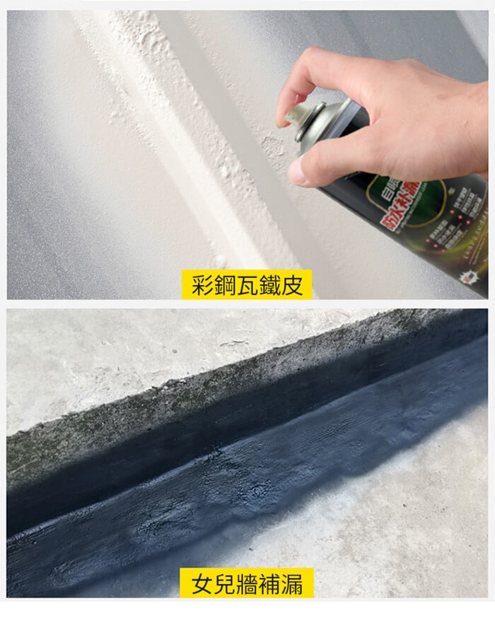 - 主商品尺寸/規格/重量/密度:品名:DIY強效型防水補漏噴劑(超值2入) 容量:450ml(±5%) 重量:500g(±5%) 顏色:黑色、白色