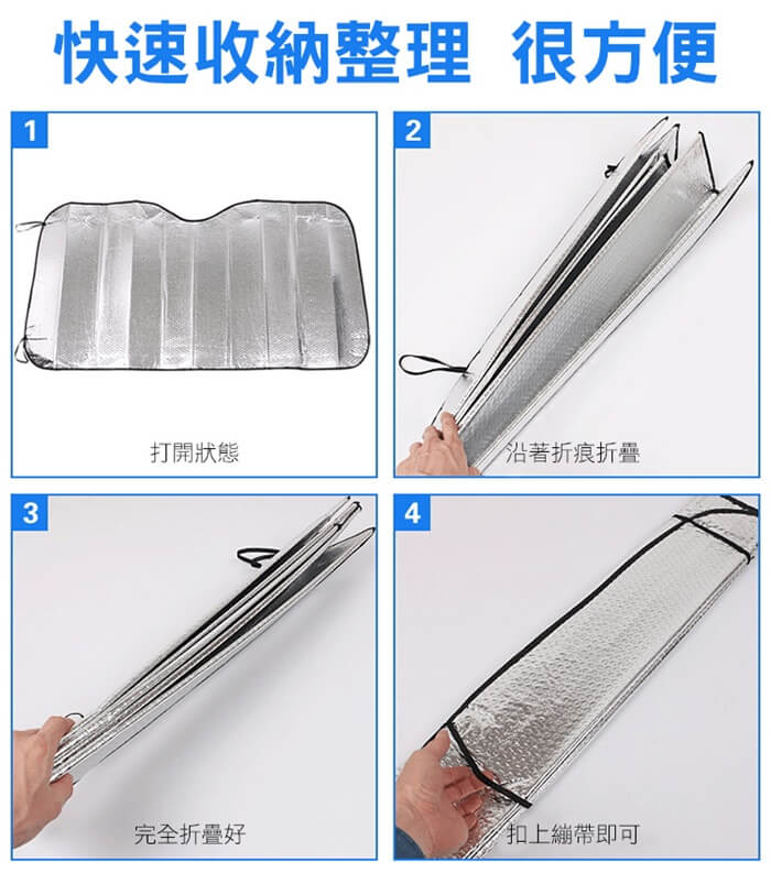 - 主商品尺寸/規格/重量/密度:品名:可折疊隔熱車用遮陽板(超值4入) 重量:500g 尺寸:140x70cm(±5%)