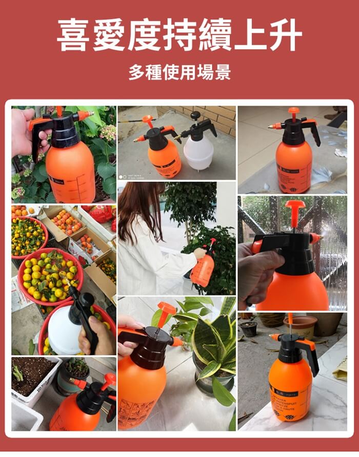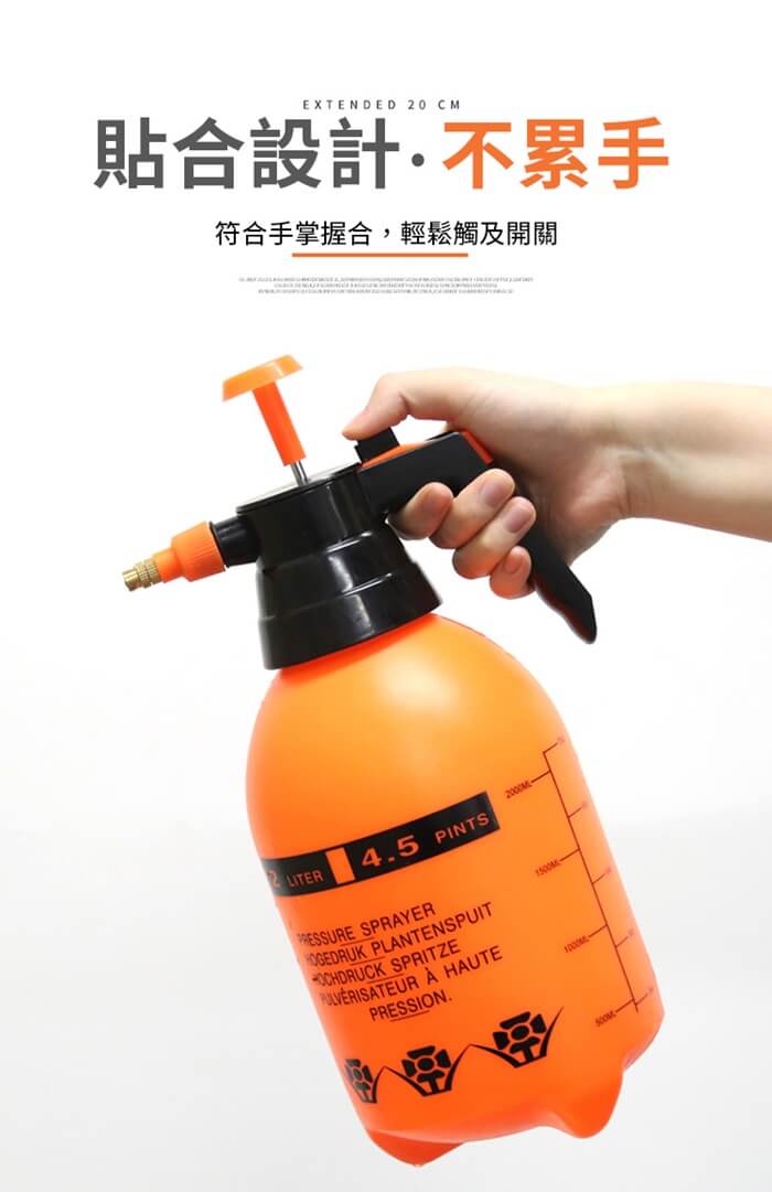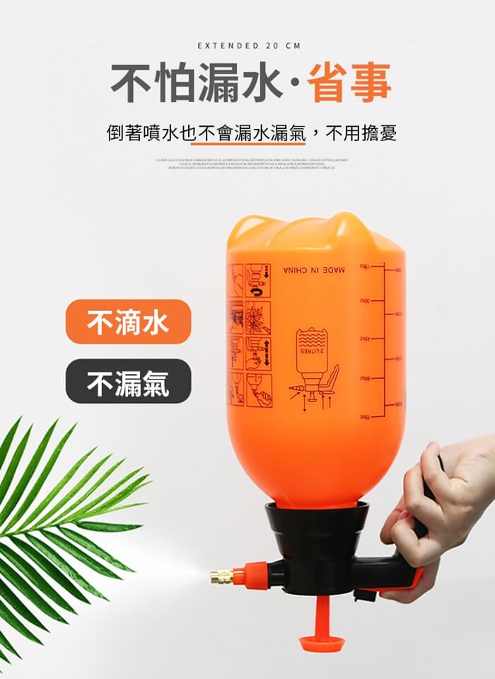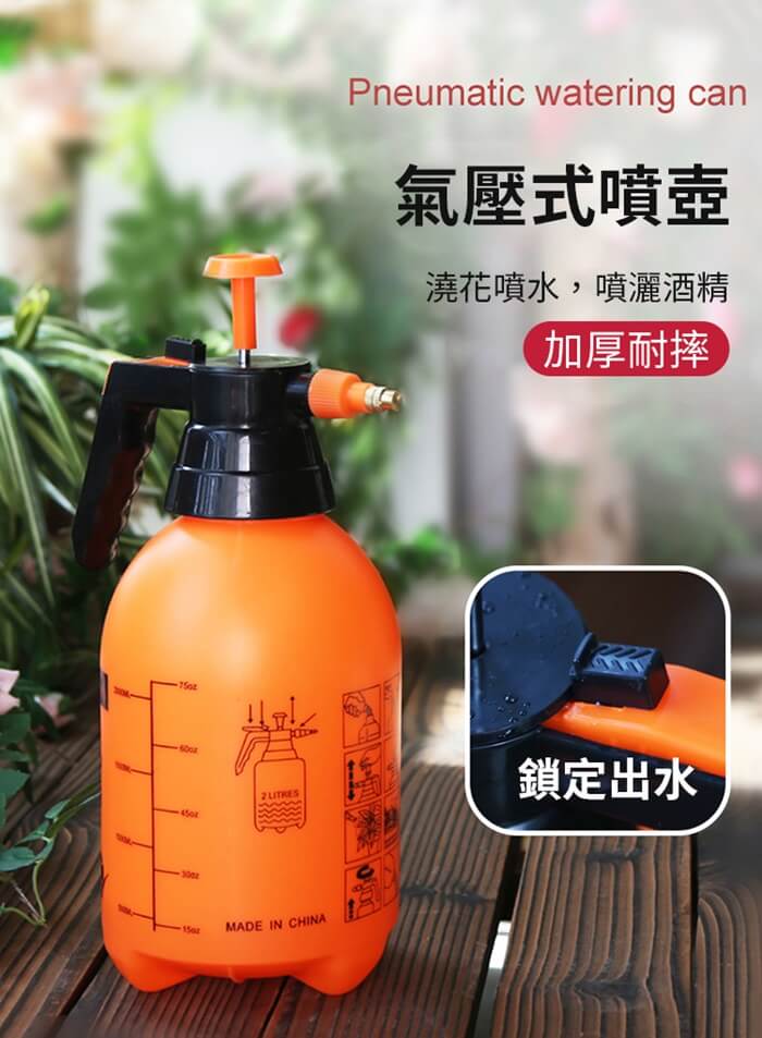 - 主商品尺寸/規格/重量/密度:品名:2L大容量高壓式自動灑水壺(超值2入) 容量:2L(±5%) 重量:300g(±5%) 尺寸:17x31cm(±5%)