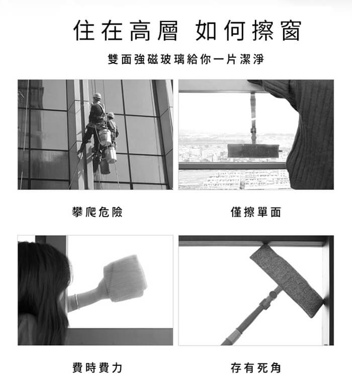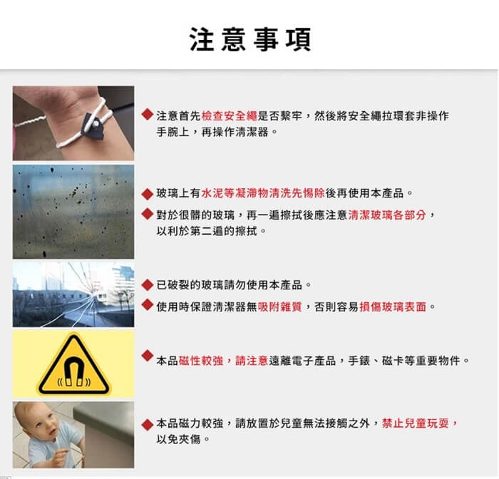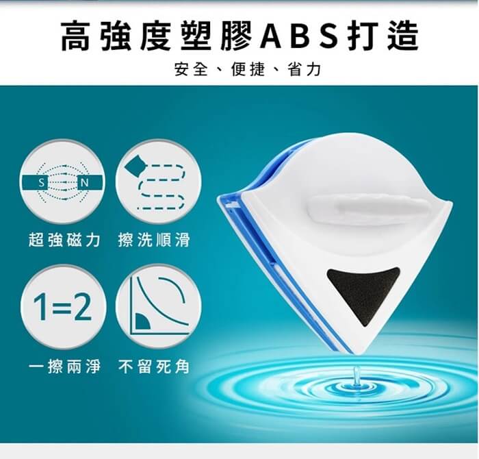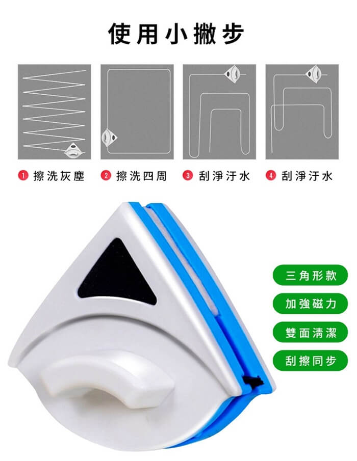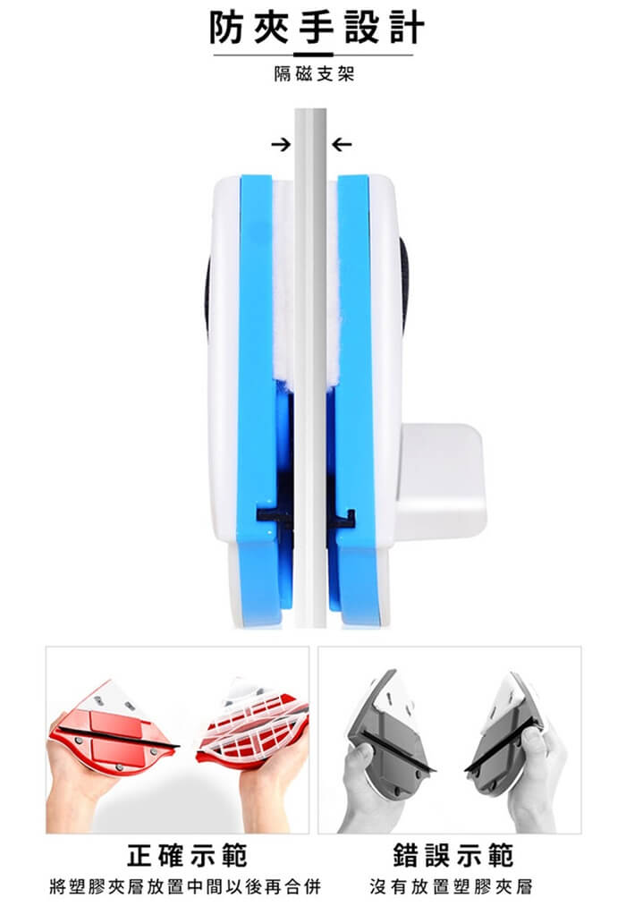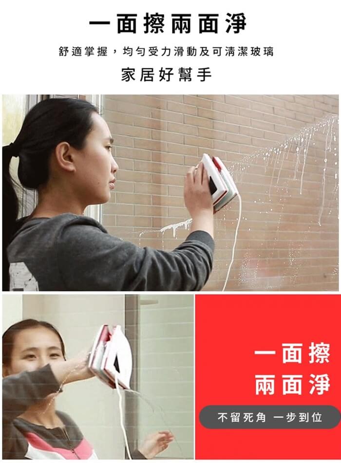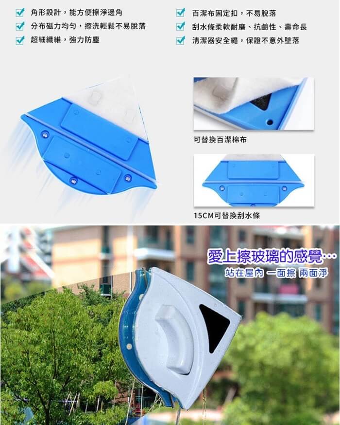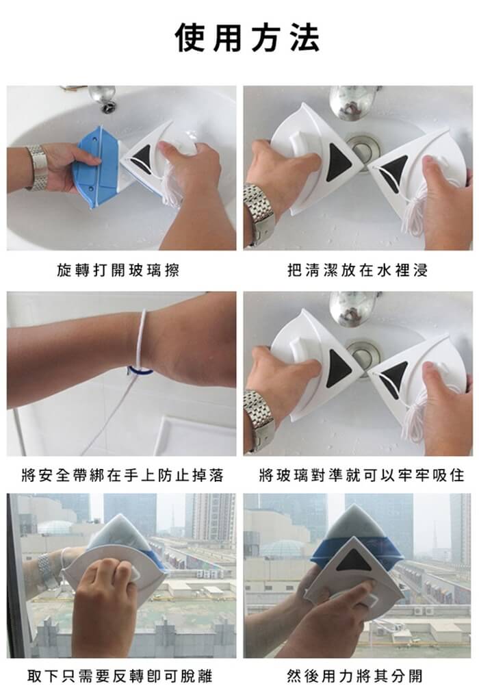 - 主商品尺寸/規格/重量/密度:品名:雙面玻璃擦窗戶清潔器(超值2入) 重量:500g 適合3-8mm單層玻璃 尺寸:16x12.5x5.5cm(±5%)