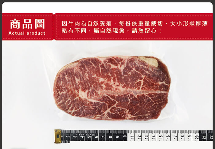 4.牛肉為天然養殖,依標示重量裁切包裝,大小及形狀厚薄略有不同,屬自然現象,請您留心!