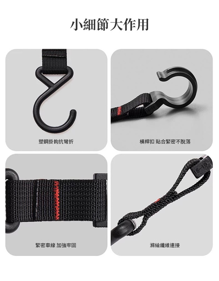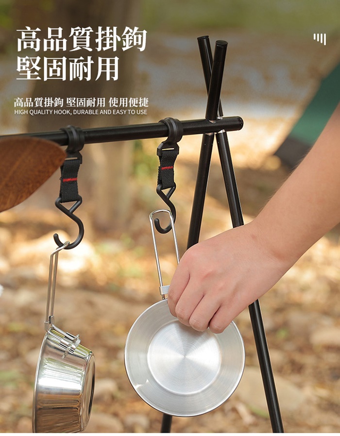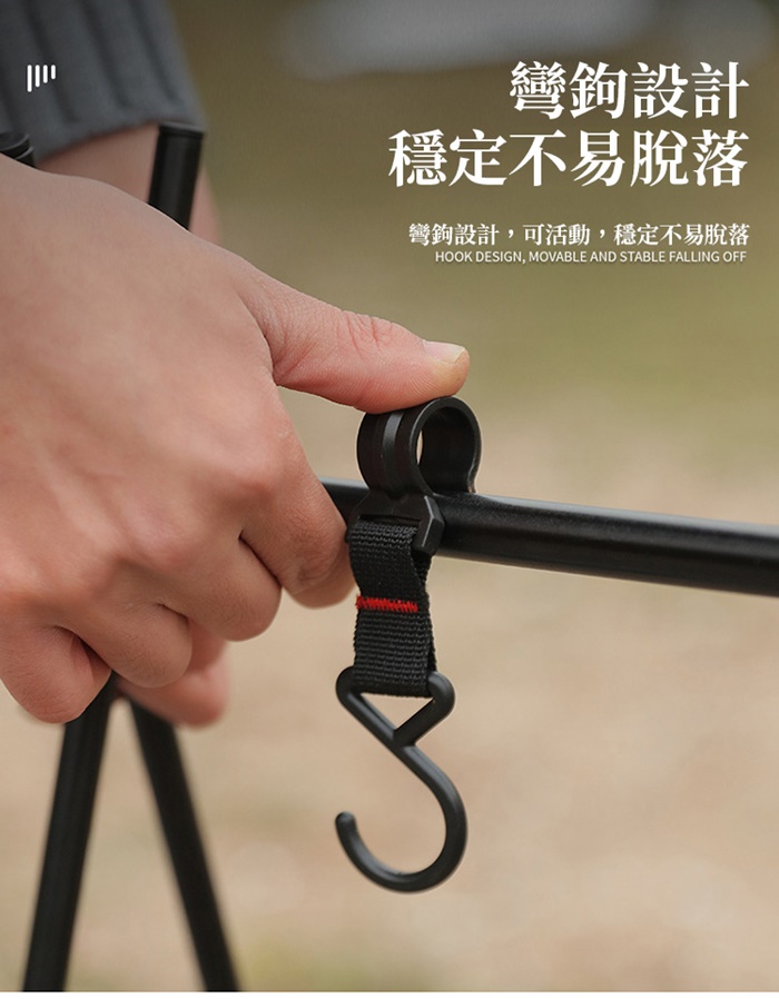 - 主商品尺寸/規格/重量/密度:品名:戶外露營便攜式耐用掛鉤(4包20入) 尺寸:3.5x11cm(±5%) 重量:10g/入 內容:5入/包