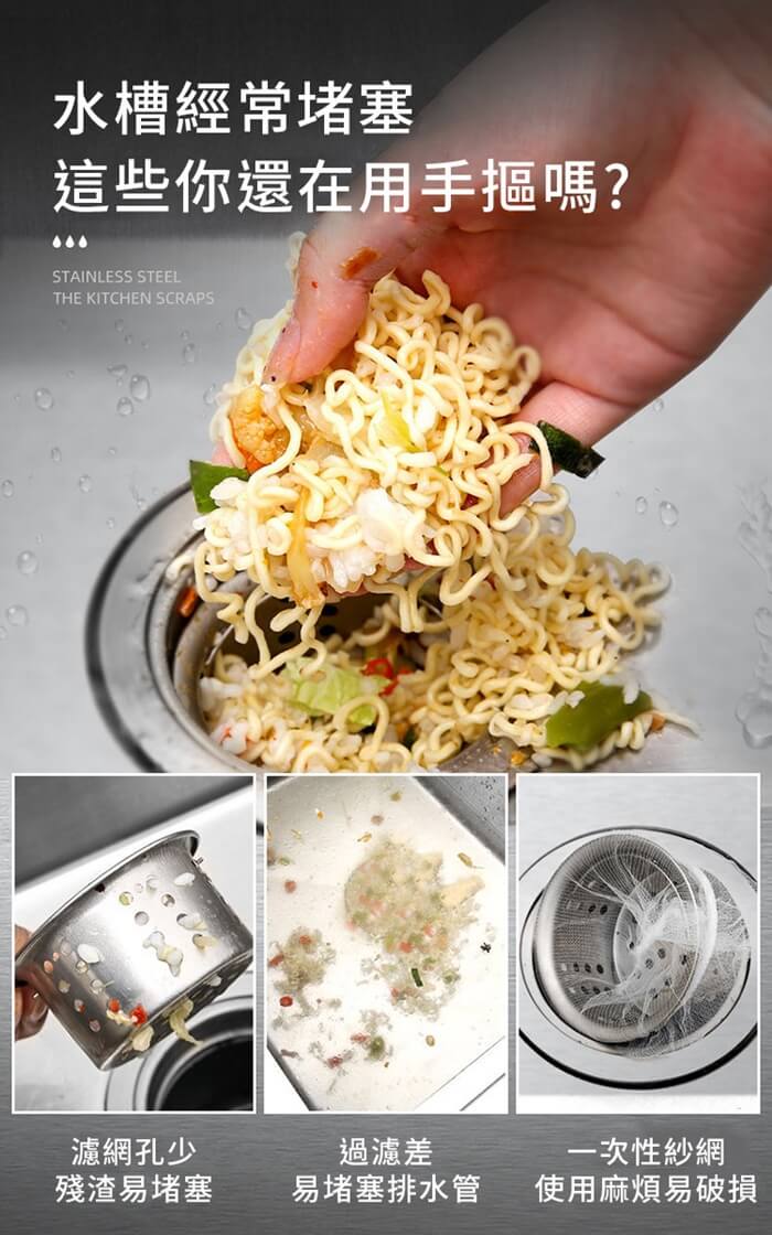 過濾細密濾孔,輕鬆搞定廚餘垃圾,水槽不再堵塞。