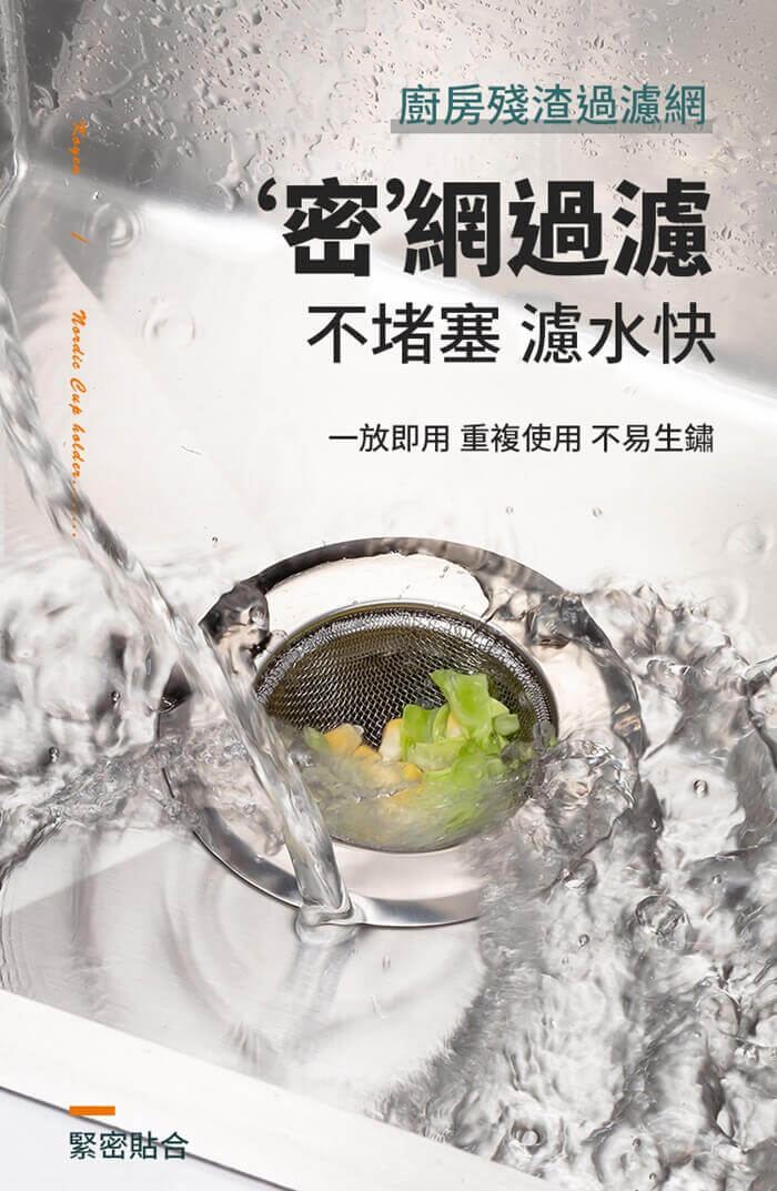 可安裝于水槽,有效過濾食物殘渣、毛發等。