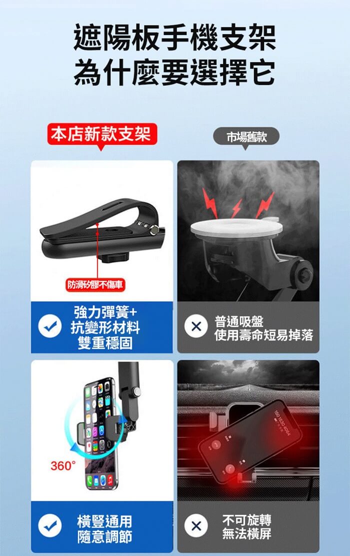 - 主商品尺寸/規格/重量/密度:品名:車用遮陽板可折疊旋轉手機支架(超值2入) 重量:100g 尺寸:25.5x12.9cm(±5%) 支援手機尺寸:7吋以內手機可使用 支援遮陽板尺寸:厚度2.5cm以內