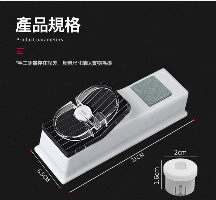 - 主商品尺寸/規格/重量/密度:品名:全自動電動磨刀器(超值2入) 電壓:5V 功率:2W 重量:400g 供電方式:usb充電 磨砂輪尺寸:2x1.6cm 磨刀器尺寸:23.5x6.5cm (手工測量及模具誤差,商品可能存在±5%誤差,具體請以實物為准)