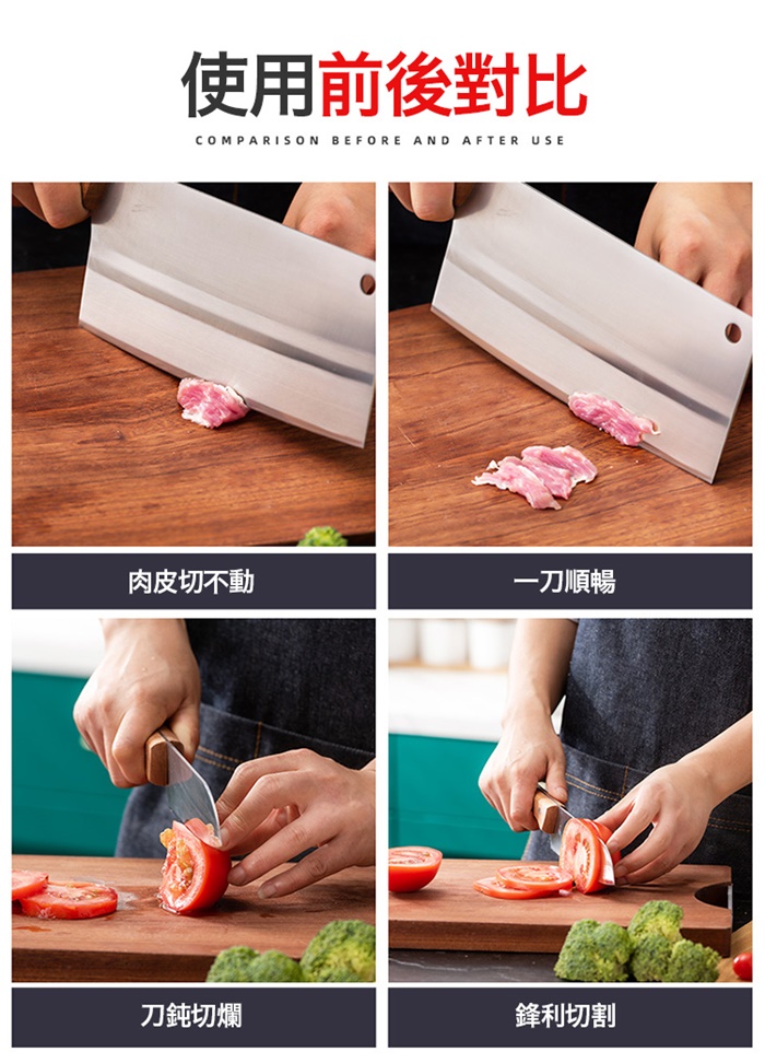 採用優質材質,適用於斬骨刀、料理刀、水果刀等多種不同刀具。