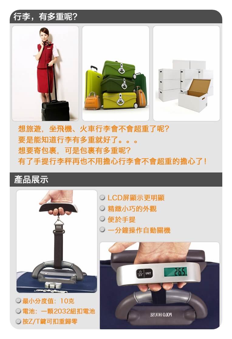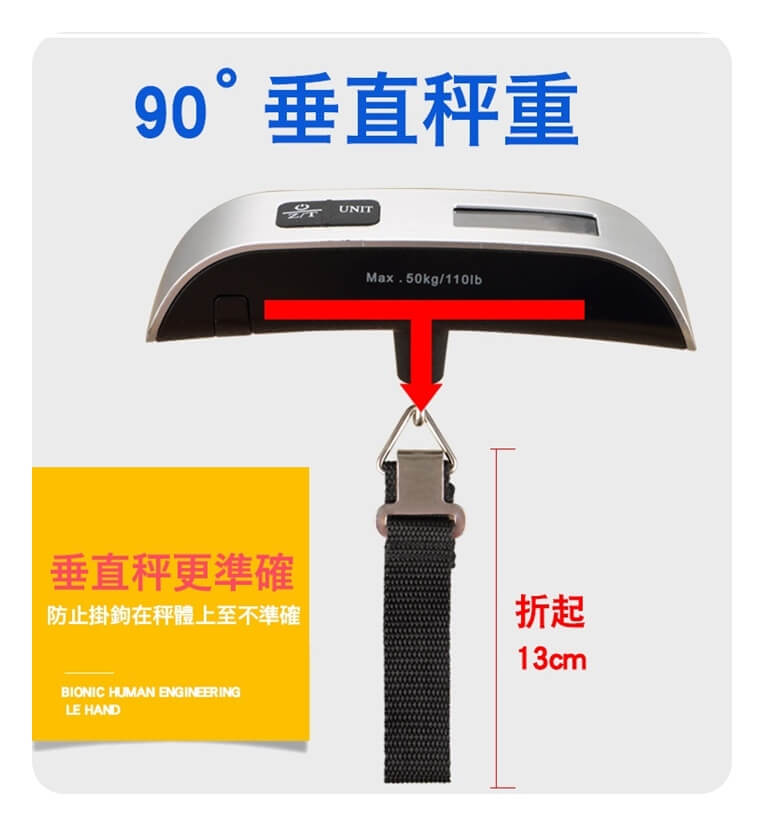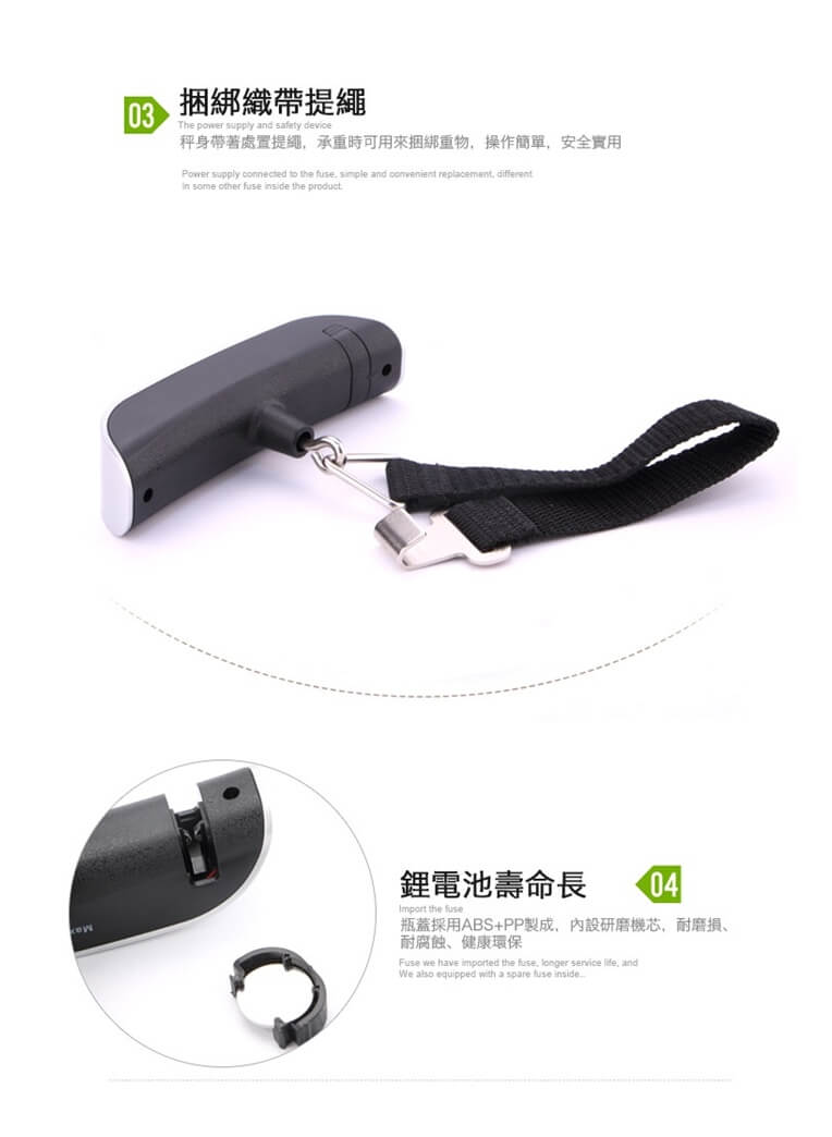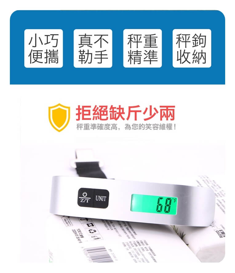 - 主商品尺寸/規格/重量/密度:品名:輕巧可夜視手持行李秤 (超值2入) 秤體尺寸:長13cm 寬3cm 電池供電:內置紐扣電池(CR2032)X1 注意事項:此商品非供交易用秤