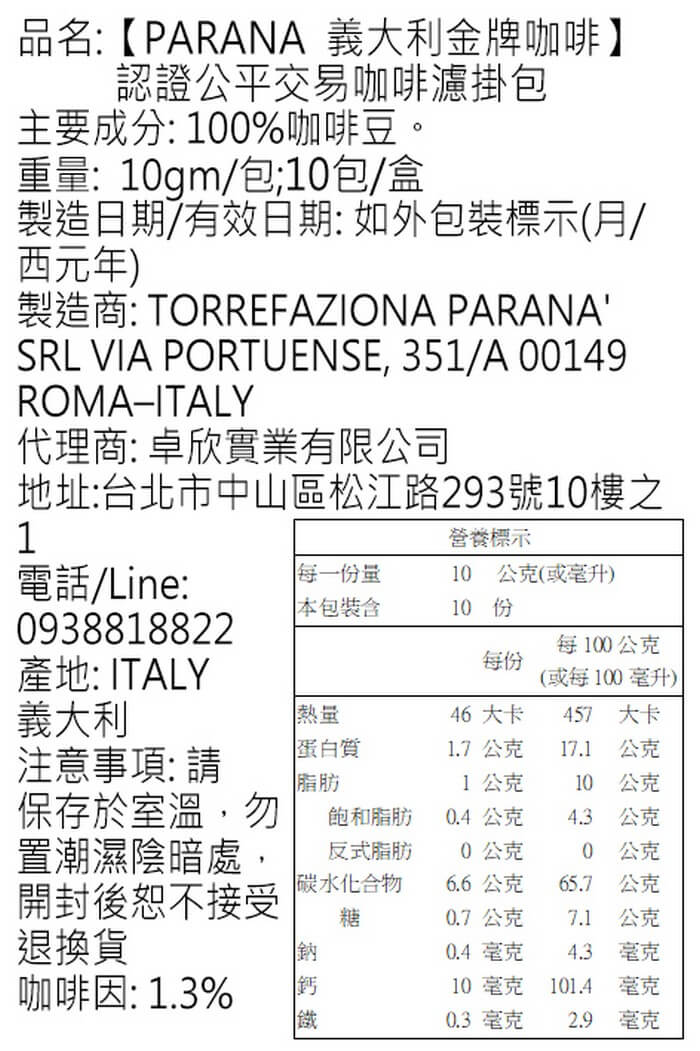 - 主商品:【PARANA 義大利金牌咖啡】認證公平交易咖啡濾掛包 禮盒組;30包/盒 +提袋