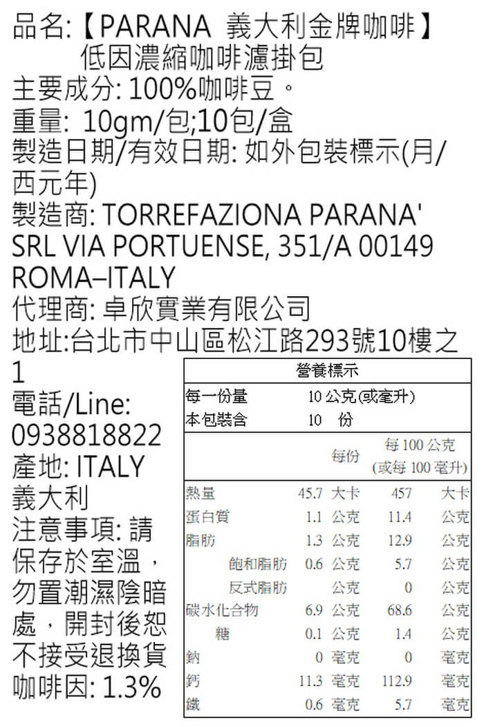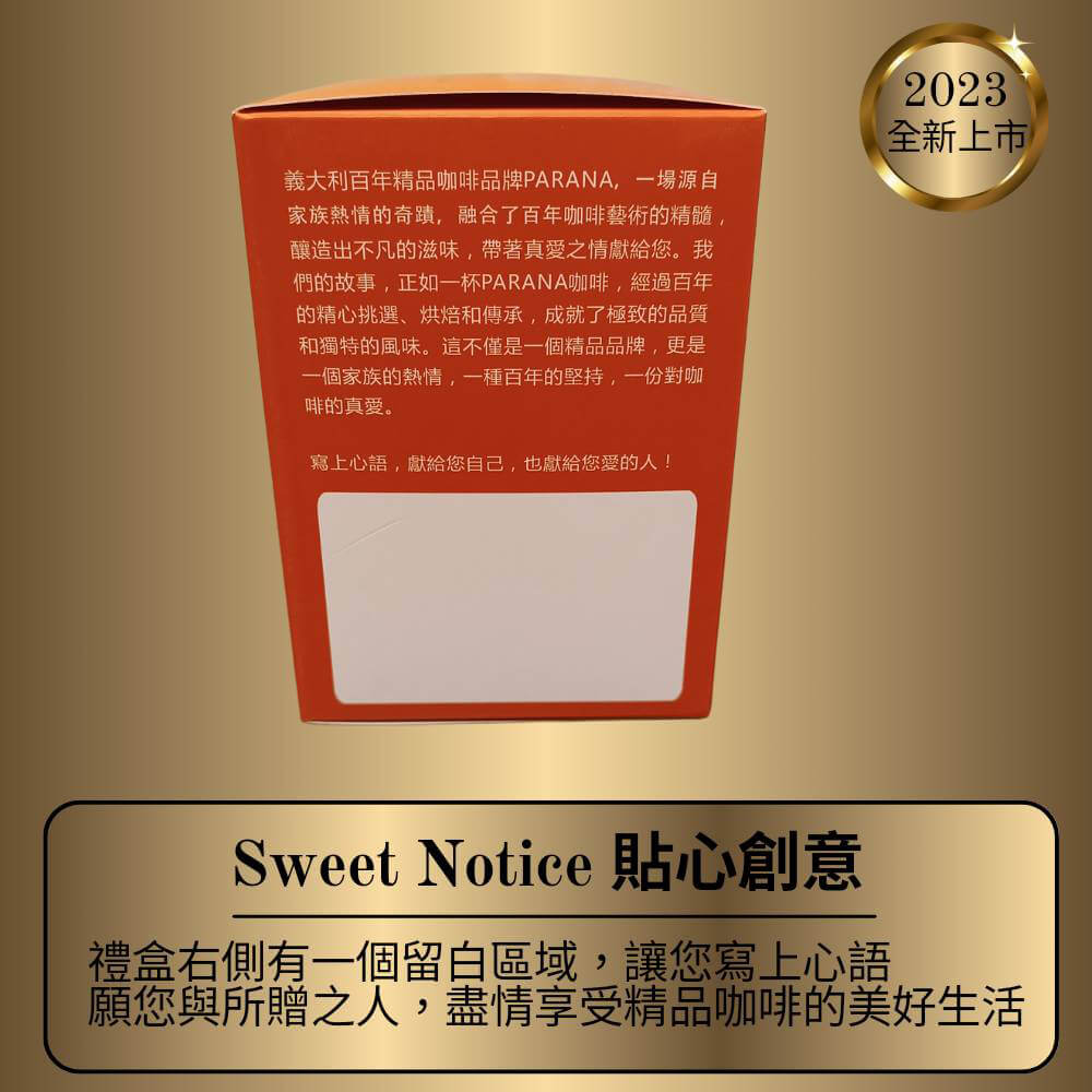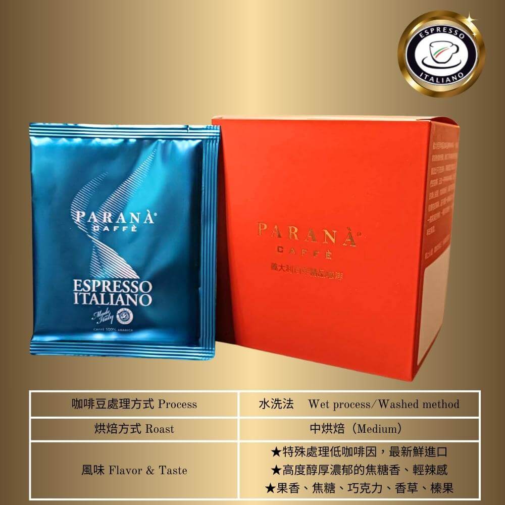 - 主商品:【PARANA 義大利金牌咖啡】低因濃縮咖啡濾掛包 10包/盒