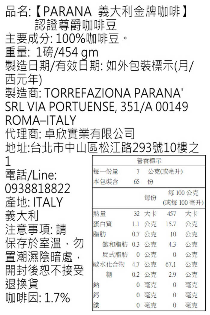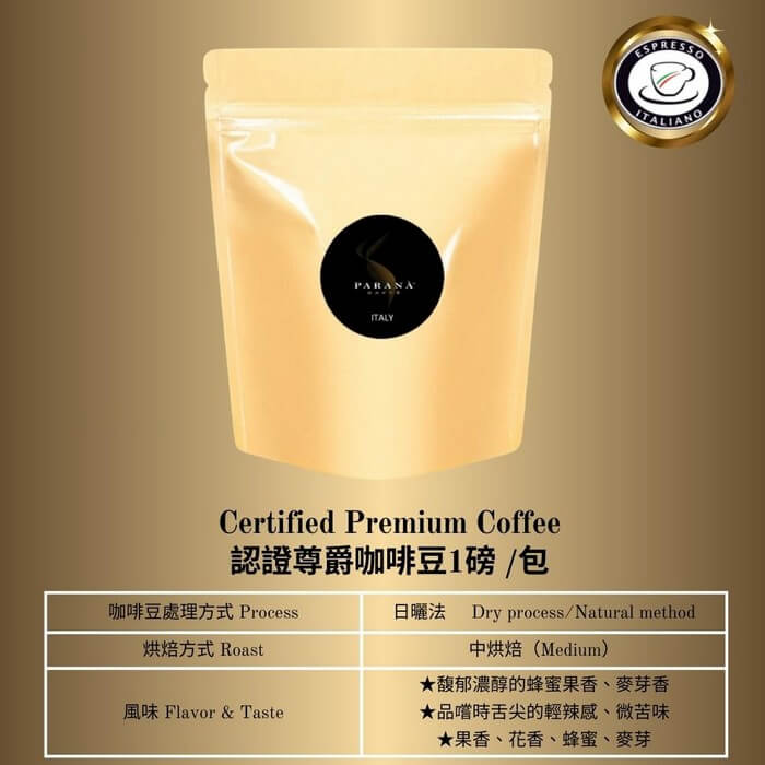 - 主商品:【PARANA 義大利金牌咖啡】認證尊爵咖啡豆1磅