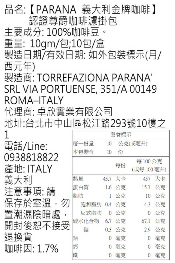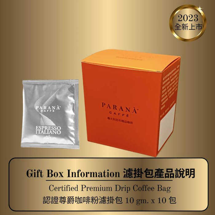 - 主商品:【PARANA 義大利金牌咖啡】認證尊爵咖啡濾掛包 10包/盒