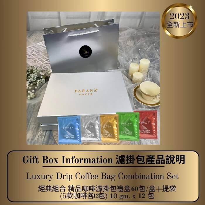 - 主商品:【PARANA 義大利金牌咖啡】極奢系列 精品五款咖啡濾掛包禮盒 60包/盒 +精品提袋