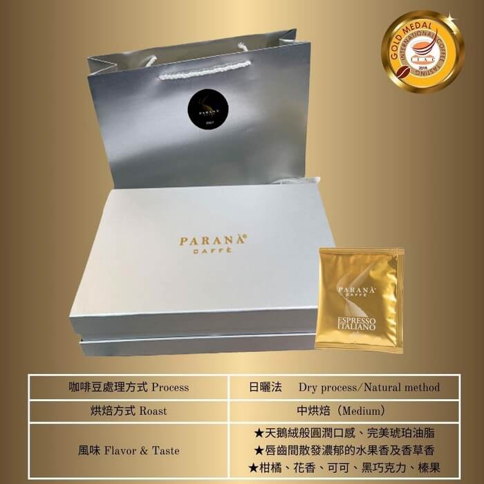 - 主商品:【PARANA 義大利金牌咖啡】極奢系列 金牌獎濃縮咖啡濾掛包禮盒 60包/盒 +精品提袋