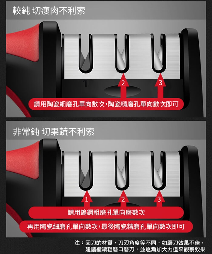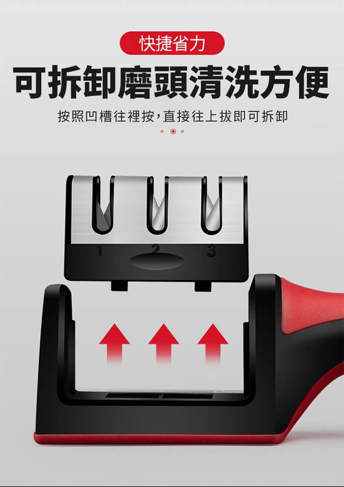 - 主商品尺寸/規格/重量/密度:品名:多功能可拆卸三段磨刀器(超值2入) 重量:200g 尺寸:21.5x5x5.7cm(±5%)