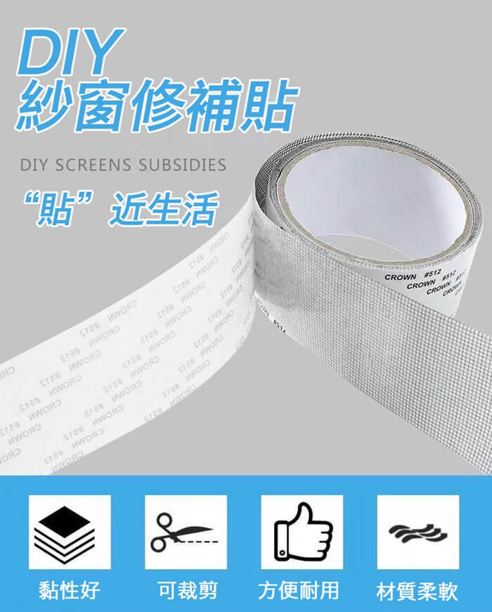DIY自黏紗窗修補貼,防堵蚊蟲自隙縫入室。