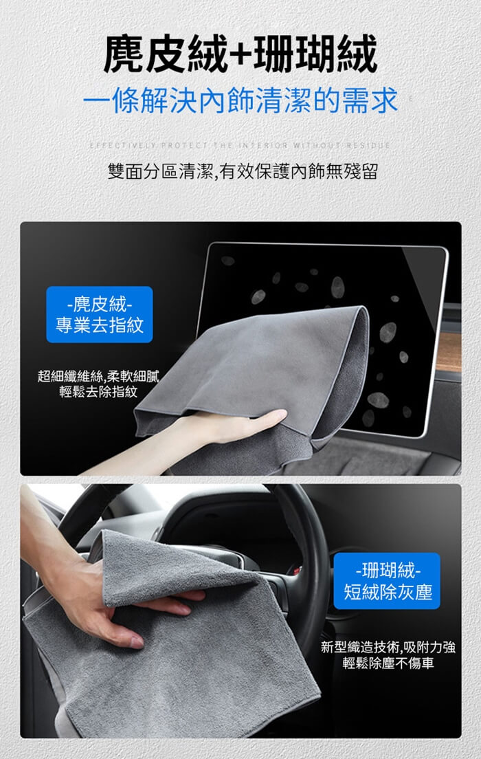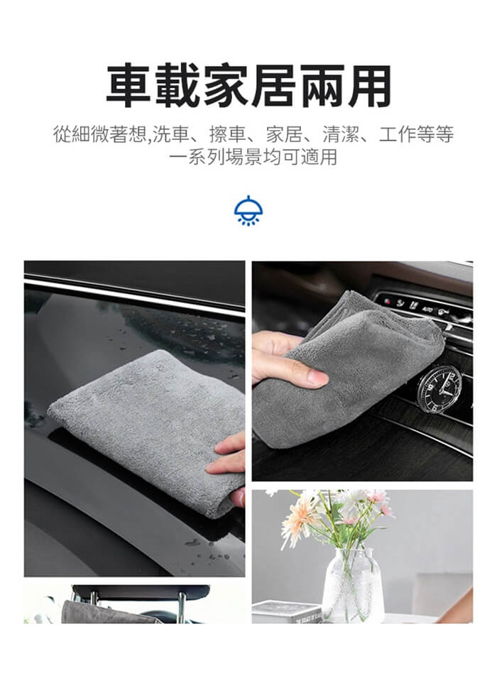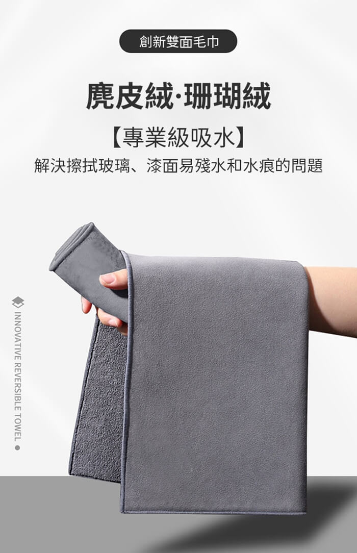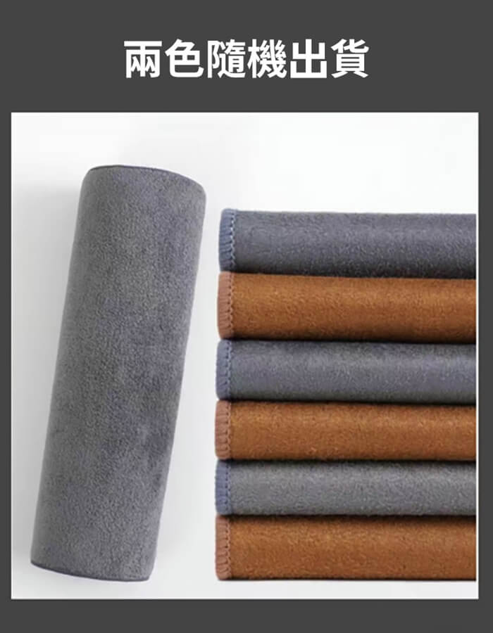 - 主商品尺寸/規格/重量/密度:品名:麂皮珊瑚絨雙面洗車毛巾(超值2入) 尺寸:30x30cm(±5%) 顏色:灰色、棕色(隨機出貨) 內容物:雙面洗車毛巾x1