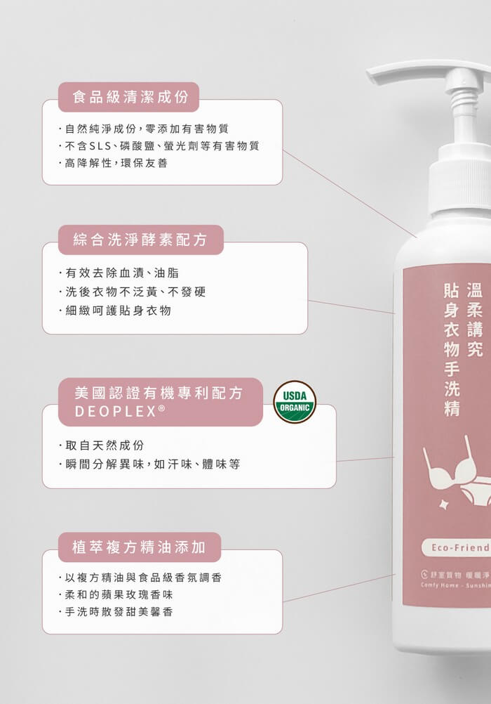 - 主商品:《暖暖淨粹 》溫柔講究貼身衣物手洗精