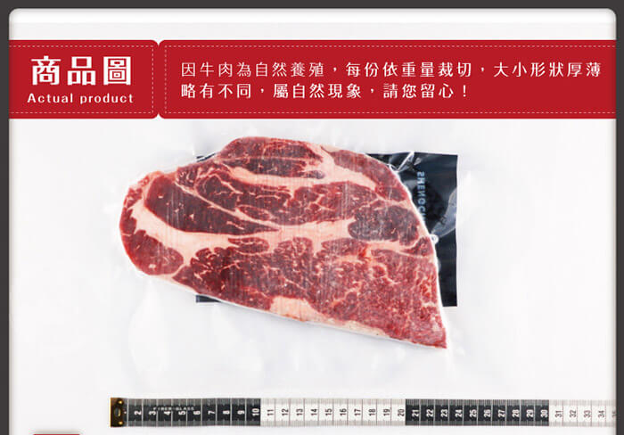 4.牛肉為天然養殖,依標示重量裁切包裝,大小及形狀厚薄略有不同,屬自然現象,請您留心!
