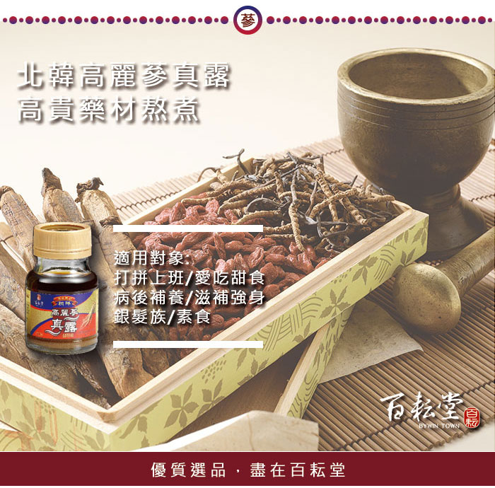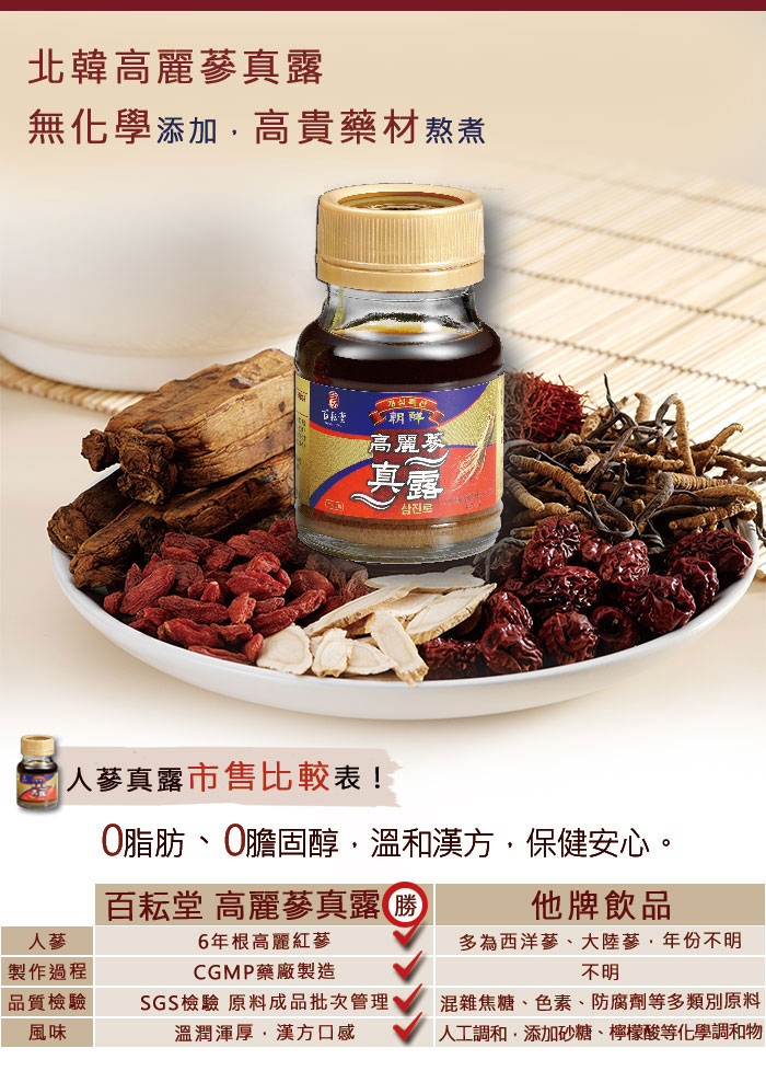 - 贈品:百耘堂高麗蔘真露 60毫升(瓶)*1