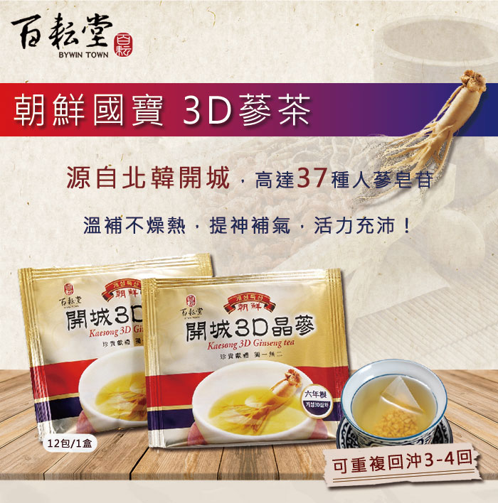 - 每日攝食方式/量:飲用方式:將一份百耘堂3D晶蔘放至於杯內,沖泡約180c.c.的熱水,建議浸泡5-8分鐘,將人蔘皂苷香氣營養完全釋放,即可享用。