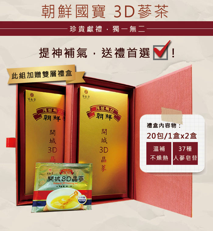 - 主商品:【百耘堂】3D晶蔘 20入雙入黃金禮盒(盒)/(20包/盒)*2