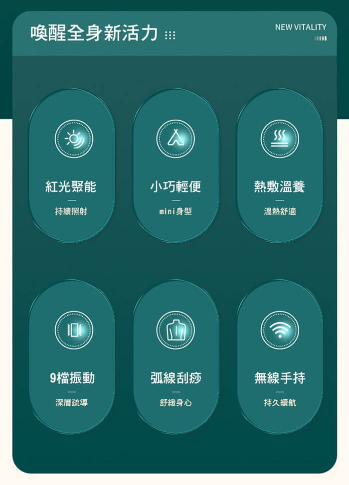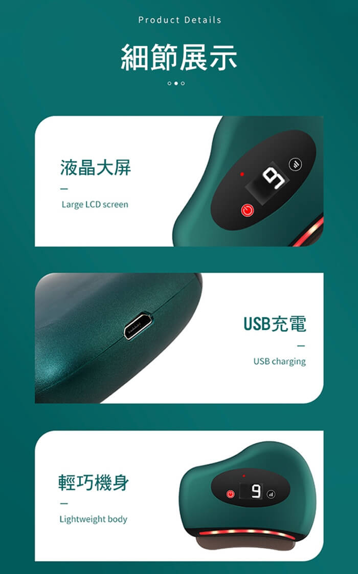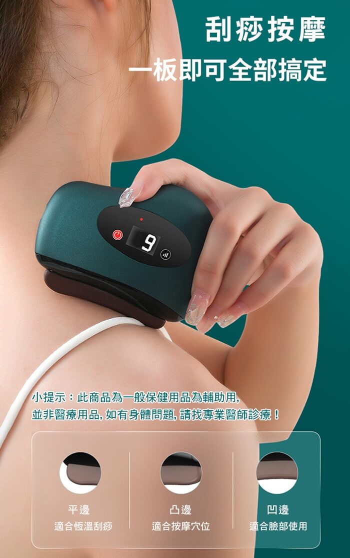 - 主商品尺寸/規格/重量:品名:電溫熱紅光護理按摩刮痧儀(超值2入) 尺寸:8x9.5cm(±5%) 電壓:3.7V 功率:2W 顏色:綠色、白色 材質:PP、電子元件 產地:中國(台灣監製) 內容物:主體x2 USB線x2 保固:非人為因素損壞,保固三個月 進口年分:2023年之前 小提示:此商品為一般保健用品為輔助用,並非醫療用品,如有身體問題,請找專業醫師診療!