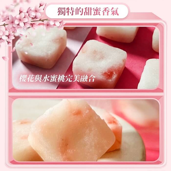 - 主商品:【CHILL愛吃】櫻花水蜜桃寒天磚(10顆/袋)x4袋