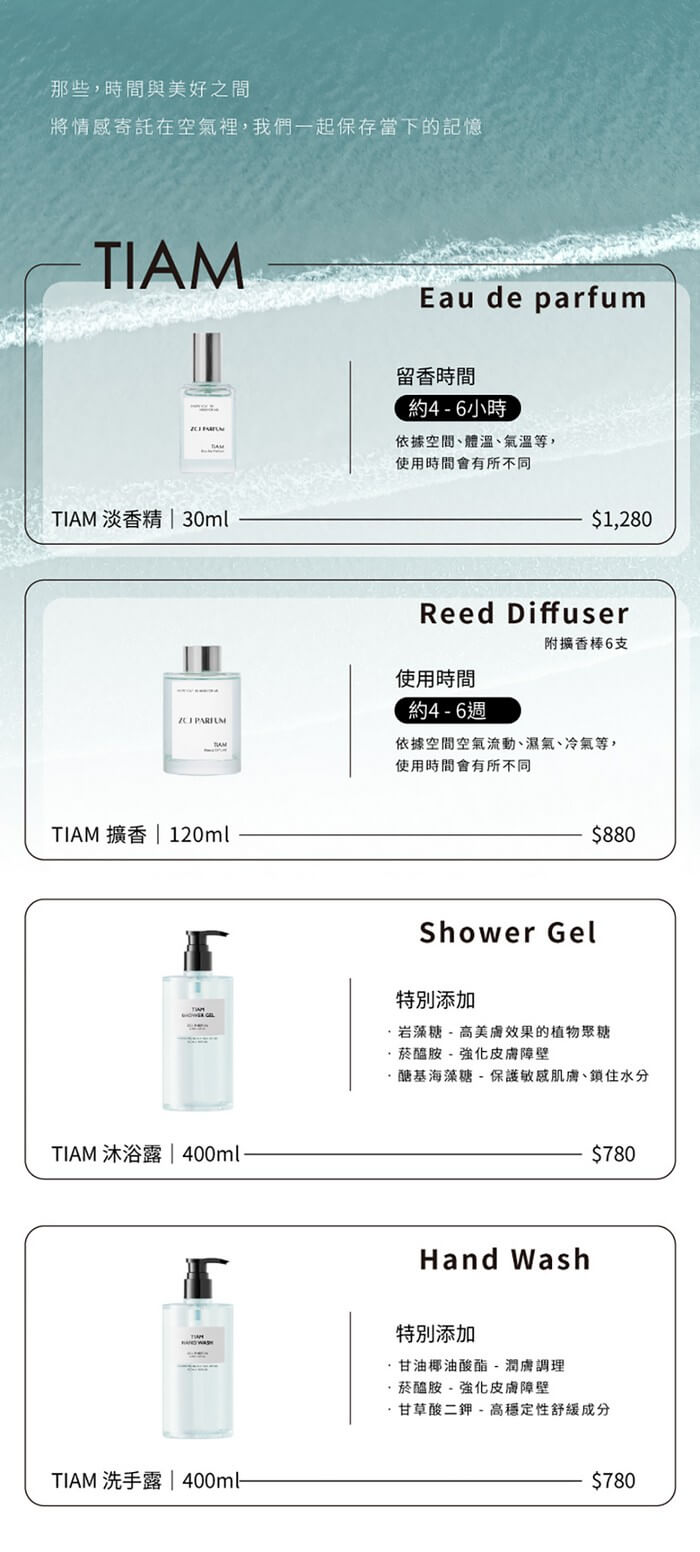 - 主商品:TIAM香氛沐浴露