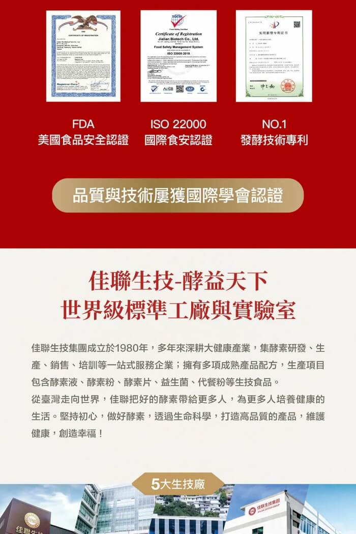 - 主商品尺寸/規格/重量:品名:樟芝酵素750ml*4瓶 內容物名稱:樟芝酵素 內容量:750ml*4瓶 原產地:台灣 保存期限:三年(未開封) 製造廠商或國內負責廠商名稱:佳聯生技有限公司 製造廠商或國內負責廠商電話:02-27581210 製造廠商或國內負責廠商地址:台南市佳里區禮化里佳里興247號 投保產品責任險字號:明台5111PDT00317 食品業者登錄字號:A-129141514-00000-5