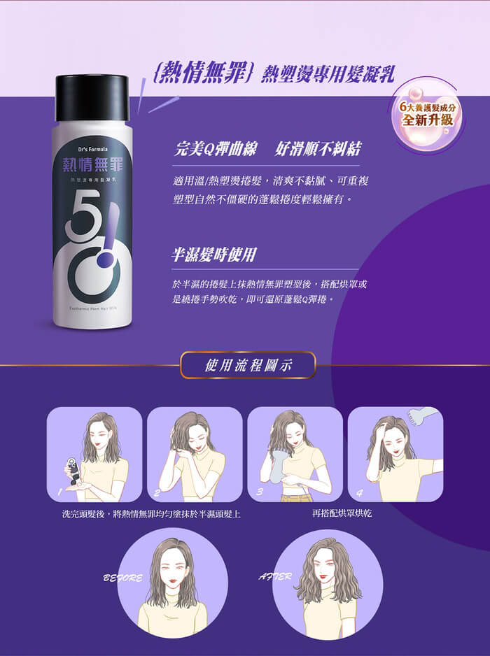 - 主商品:《台塑生醫》Dr’s Formula 510熱情無罪-熱塑燙專用髮凝乳(升級版)150ml*2入