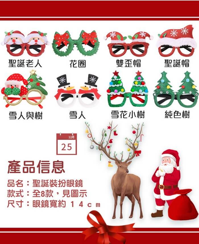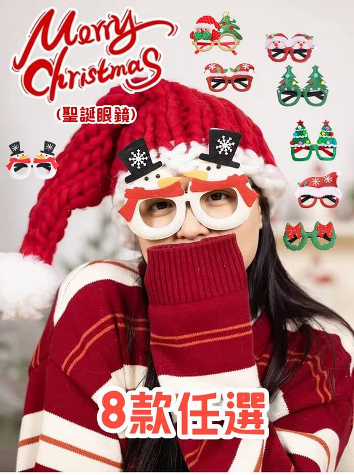 - 主商品:【QiMart】聖誕造型裝扮眼鏡(8款任選)-12入