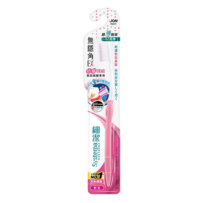 - 主商品尺寸/規格/重量:商品名稱:獅王細潔無隱角EX牙刷抗敏護齦牙刷 產地:台灣 保存期限:3年 製造日期:如商品上標示