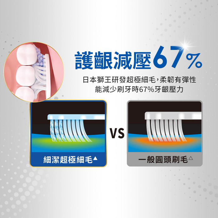 專利超極細毛,柔軟舒適,減少牙齦壓力,呵護牙齦。