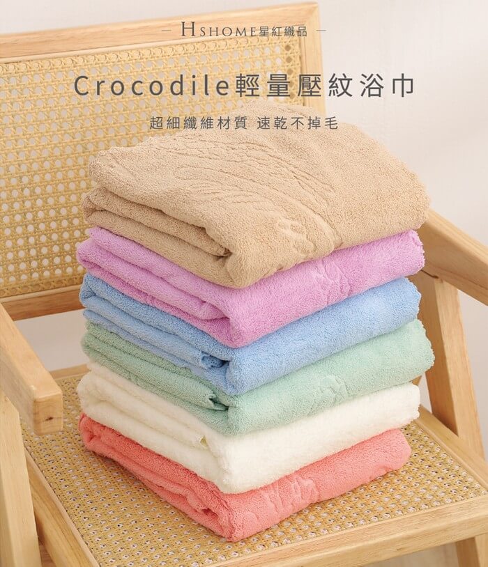- 主商品:【星紅織品】鱷魚正版授權輕量壓紋浴巾-12入