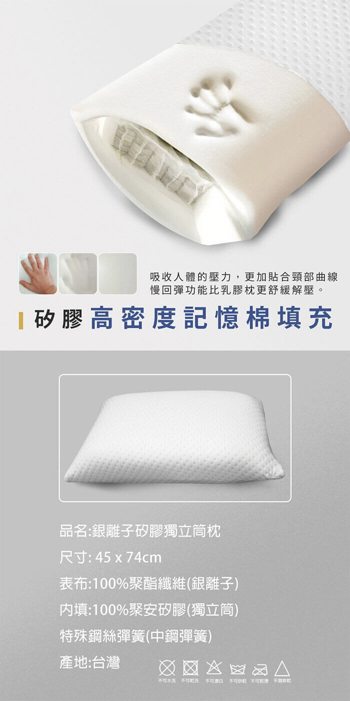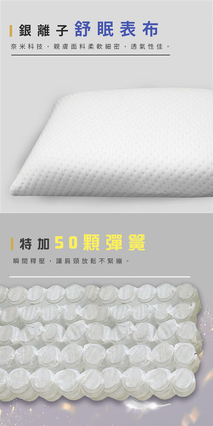 - 主商品:【家購網嚴選】銀離子矽膠包覆獨立筒枕 45x74cm/個