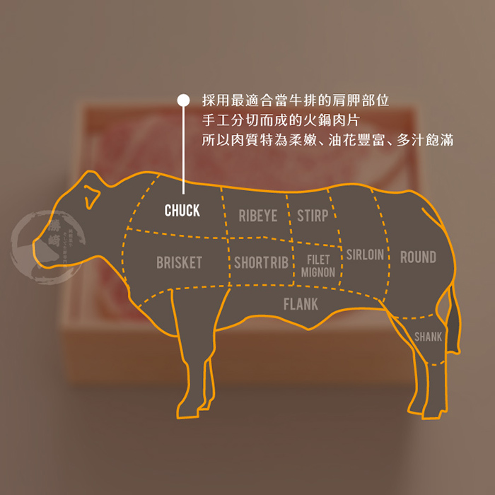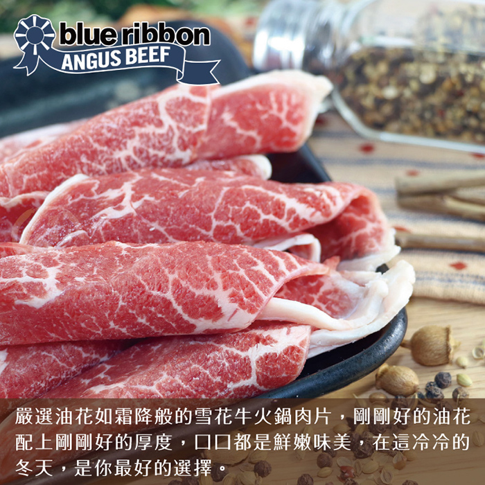 - 主商品:【勝崎生鮮】美國藍帶雪花牛火鍋肉片8盒組(1600公克/8盒)贈-美國CAB雪花牛培肉片*2盒
