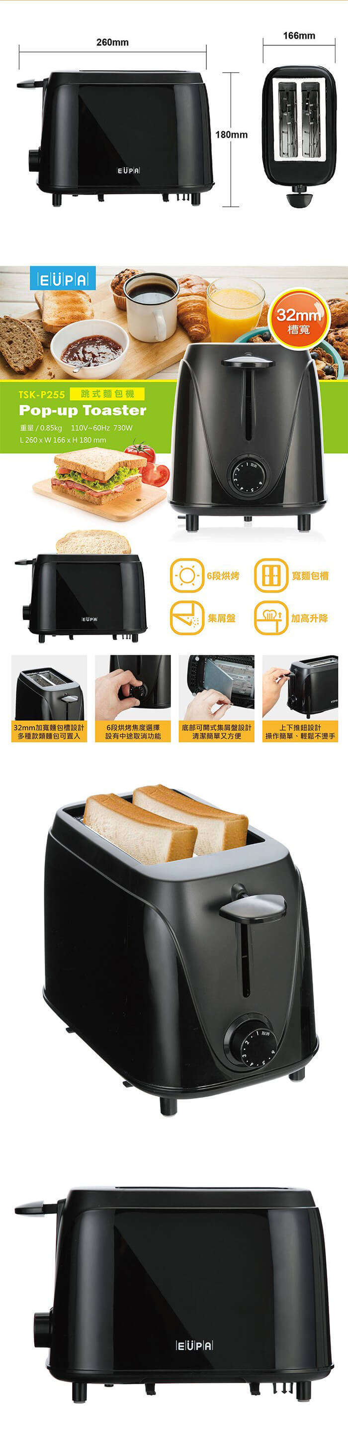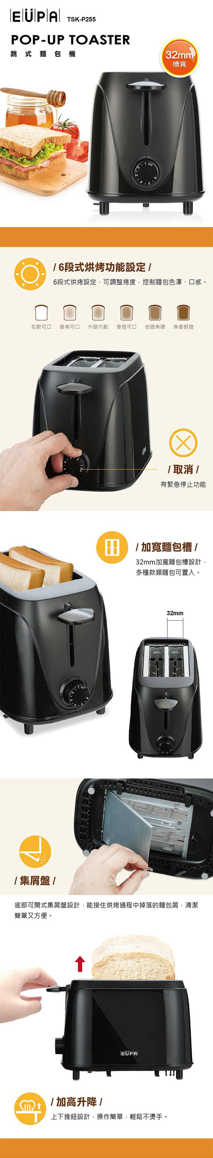 - 主商品:【優柏EUPA】 跳式麵包機TSK-P255*1