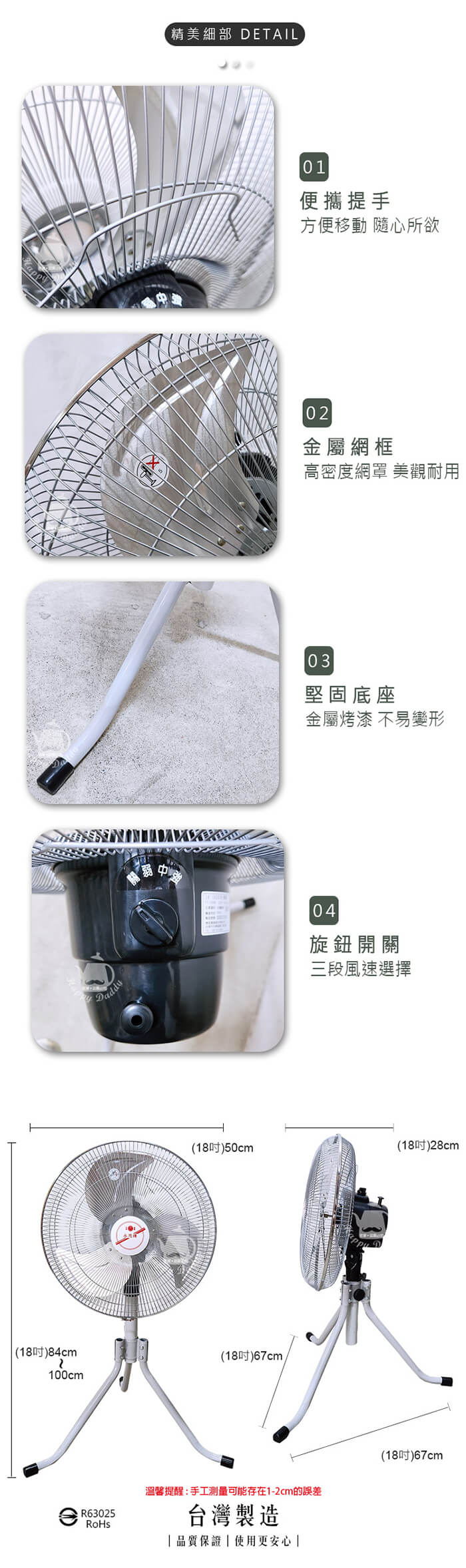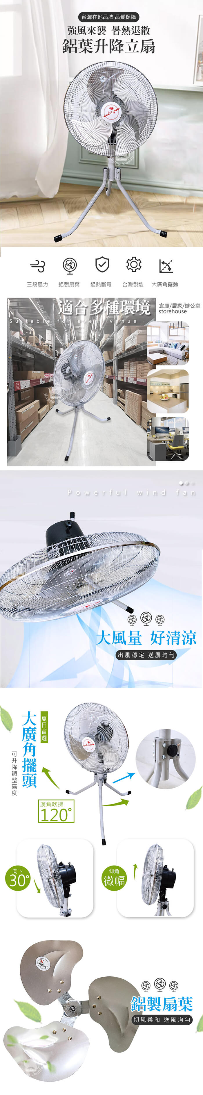 - 主商品:【永用牌】18吋鋁葉三腳工業立扇FC-1828B*1