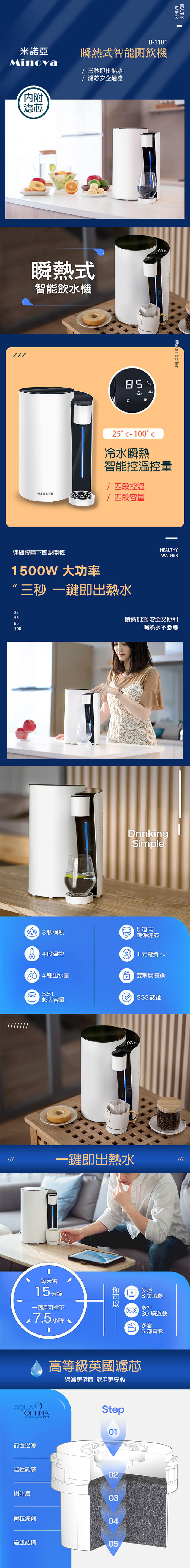 - 主商品:【Minoya米諾亞】瞬熱式智能開飲機IB-1101*1