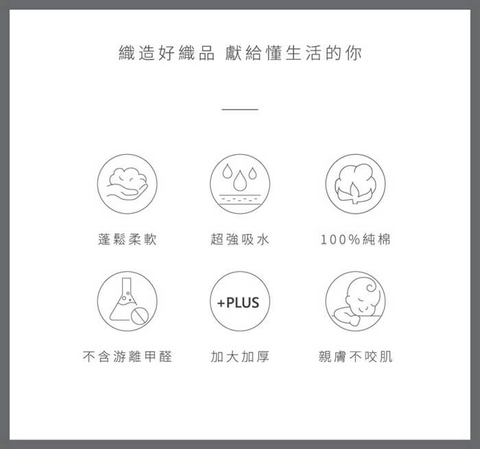 100%純棉,超強吸水力 。