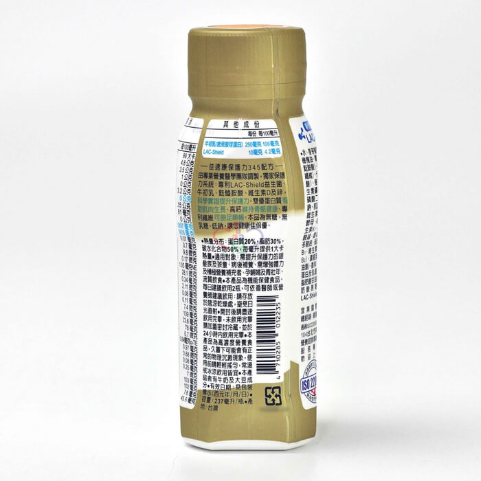 - 主商品尺寸/規格/重量:中文品名:保護力345 淨重、容量或數量:237ml*24瓶/箱 食品添加物名稱:詳見外包裝標示 製造廠商或國內負責廠商名稱:維維樂企業股份有限公司 製造廠商或國內負責廠商電話:0800-222-777 製造廠商或國內負責廠商地址:台北市南京東路三段68號5樓 原產地(國):台灣 保存期限:12個月 製造/有效期限:詳見外包裝標示 營養成分標示:詳見外包裝標示 含基因改造食品原料:詳見外包裝標示 其他經中央主管機關公告之事項:詳見外包裝標示 投保產品責任險字號:詳見外包裝標示 *備註:1.若需商品詳細資訊或對產品有任何問題,皆可留言或電話與我們聯繫,我們將提供您專業的商品諮詢服務。 2.網頁圖片因拍攝關係會與實際商品略有色差,圖片僅供參考,顏色請以實際收到之商品為準。 3.商品外觀如有異動,恕不另行通知,圖片樣式僅供參考,請以實際出貨外觀為主。 食品業者登錄字號:D-200009045-00001-1