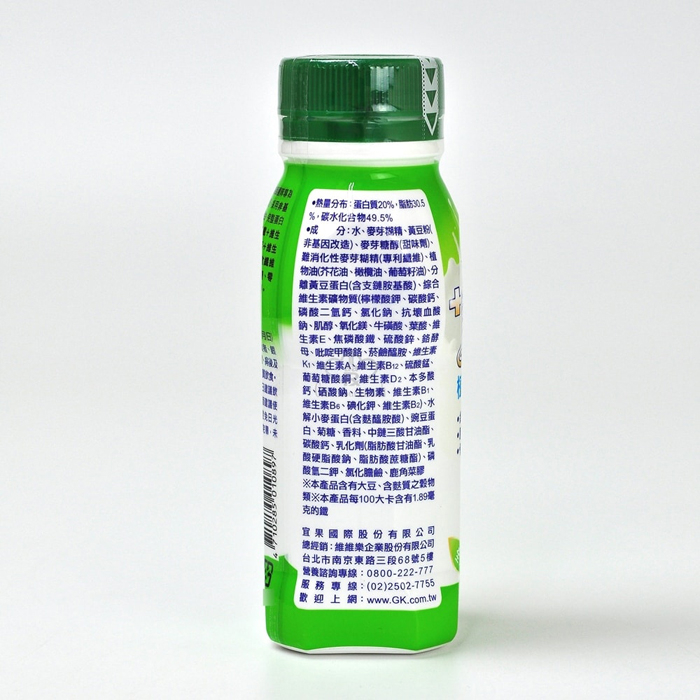 - 主商品尺寸/規格/重量:中文品名:植物蛋白配方 淨重、容量或數量:237ml/瓶 食品添加物名稱:詳見外包裝標示 製造廠商或國內負責廠商名稱:宜果國際股份有限公司 製造廠商或國內負責廠商電話:0800-222-777 製造廠商或國內負責廠商地址:台北市南京東路三段68號5樓 原產地(國):台灣 保存期限:12個月 製造/有效期限:詳見外包裝標示 營養成分標示:詳見外包裝標示 含基因改造食品原料:詳見外包裝標示 其他經中央主管機關公告之事項:詳見外包裝標示 投保產品責任險字號:詳見外包裝標示 *備註:1.若需商品詳細資訊或對產品有任何問題,皆可留言或電話與我們聯繫,我們將提供您專業的商品諮詢服務。 2.網頁圖片因拍攝關係會與實際商品略有色差,圖片僅供參考,顏色請以實際收到之商品為準。 3.商品外觀如有異動,恕不另行通知,圖片樣式僅供參考,請以實際出貨外觀為主。 食品業者登錄字號:D-200009045-00001-1