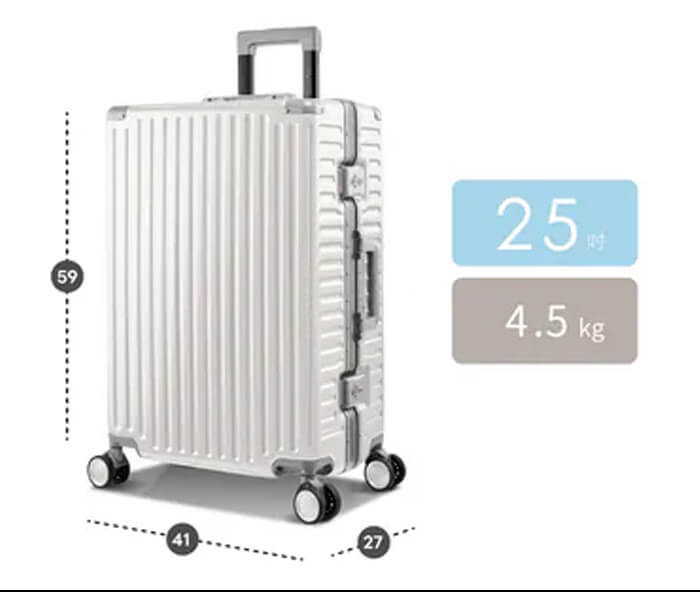 - 主商品尺寸/規格/重量/密度:尺寸:25吋-41×27×59cm(不含輪子) 載重:25吋-9Kg 型號:AAA6699(PC)