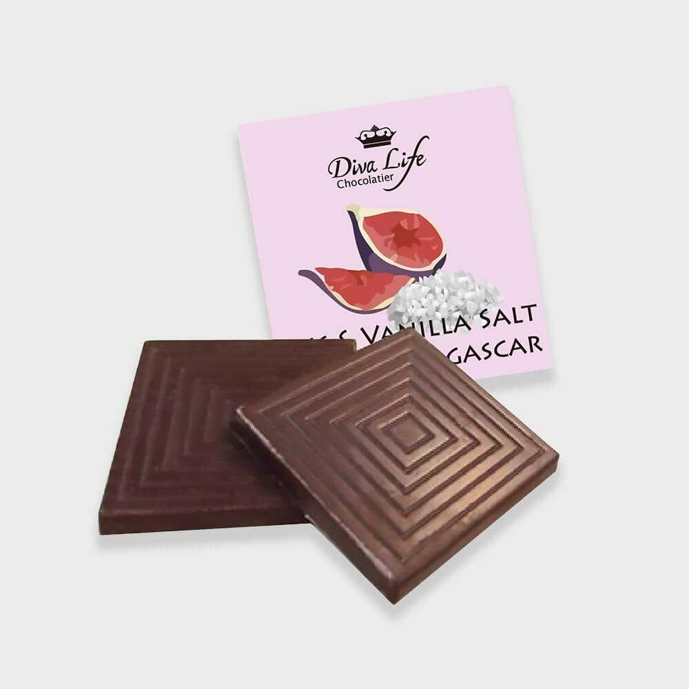 - 內容物名稱:可可漿、糖、無花果、可可脂、大豆卵磷脂、馬達加斯加香草鹽(天然香草、鹽)、香草香料、無花果香料